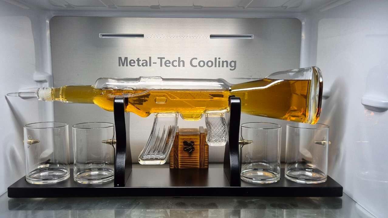 Elegant Decanter: Equip your war-room with this elegant rifle whiskey decanter and its accompanying bullet glasses. With its intricate design and its rustic theme, this decanter serves as a testament for any whisky connoisseur’s status.